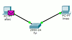Была созданна сеть из двух компьютеров и коммутатора (Добавлена LAN A - subnet 10.1.255.0 mask: 255.255.255.240)